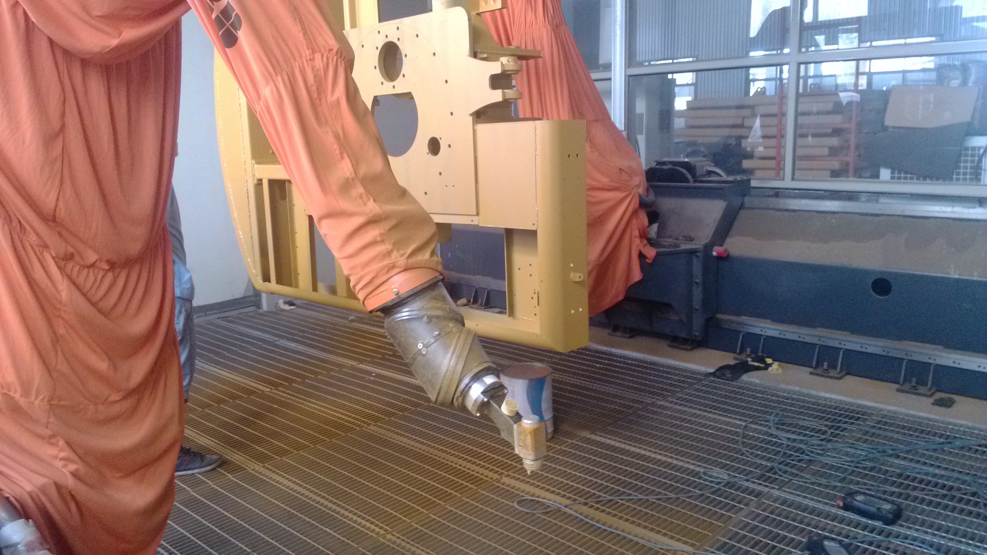 ? ? ?挖掘機部件噴涂機器人系統(tǒng),顧名思義是用于工程機械部件外表面的底漆涂裝;機器人在輸送鏈兩側(cè)擺放,每臺機器人負(fù)責(zé)工件一側(cè)的噴涂, 2 臺機器人完成工件外表面的噴涂范圍的覆蓋。