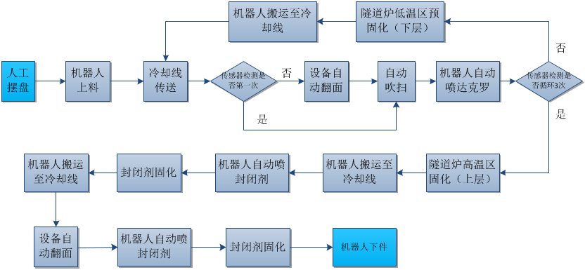 | 達克羅自動噴涂系統改造 方案 | 1、生產效率完成整個達克羅螺栓噴涂流程需要4名工人,機器人工作站能同時完成達克羅的噴涂固化以及搬運。 通過機器人工作效率對比工人工作效率可得:機器人效率是人工效率的1.1倍;工作時間是工人的2倍;年產量是工人2.4倍。 2、經濟效益 通過上述生產效率可得出:投資一套達克羅自動噴涂系統生產線可省去8名工人,同時日工作效率為工人的兩倍之多; 按噴涂工人年薪8萬/年薪水計算,一年可為企業省去64萬元。 |