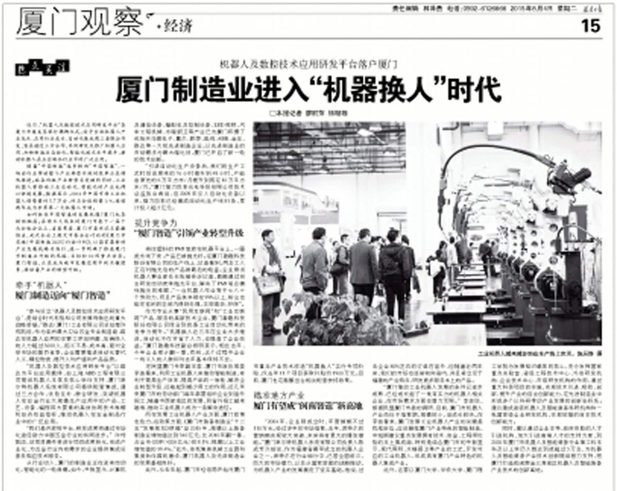 機器人及數控技術應用研發平臺落戶廈門 廈門制造業進入“機器換人”時代 福建日報記者廖麗萍楊珊珊 ? ???????近日,“機器人及數控技術應用研發平臺…