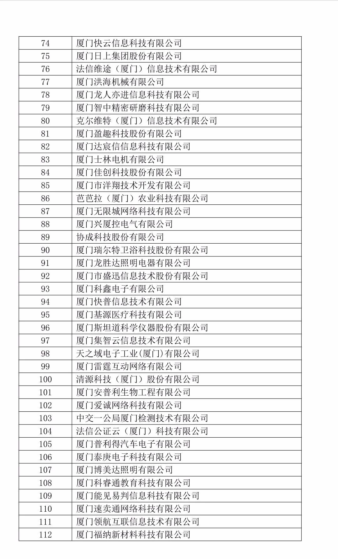 根據《高新技術企業認定管理辦法》(國科發火〔2016〕32號)和《高新技術企業認定管理工作指引》(國科發火〔2016〕195號)有關規定,現將廈門市2018年第一批452家企業擬認定高新技術企業名單(詳見附件)予以公示,公示期為10個工作日。