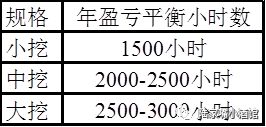 平均作業小時數是衡量挖掘機械下游施工需求,判定未來行業發展趨勢的重要指標之一。根據經驗,不同機型的盈虧平衡點如下: