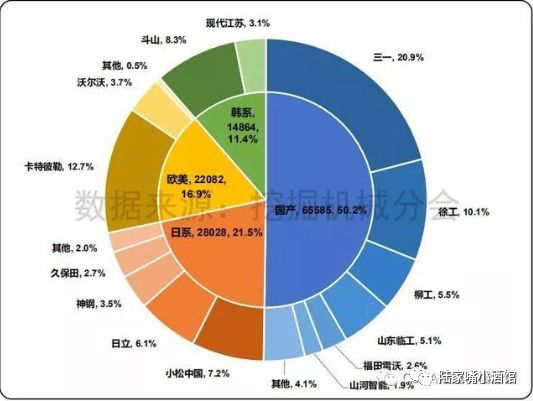 外資品牌市場占有率前3依次為卡特彼勒、斗山和小松。