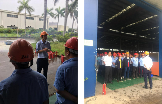 ? 2、消防實操演練:本次演練講解了廠區(qū)的安全隱患點、發(fā)生火災(zāi)逃生通道、巡查點,特別進(jìn)行了消防栓現(xiàn)場操作演練,以兩人為一組進(jìn)行現(xiàn)場演練操作。