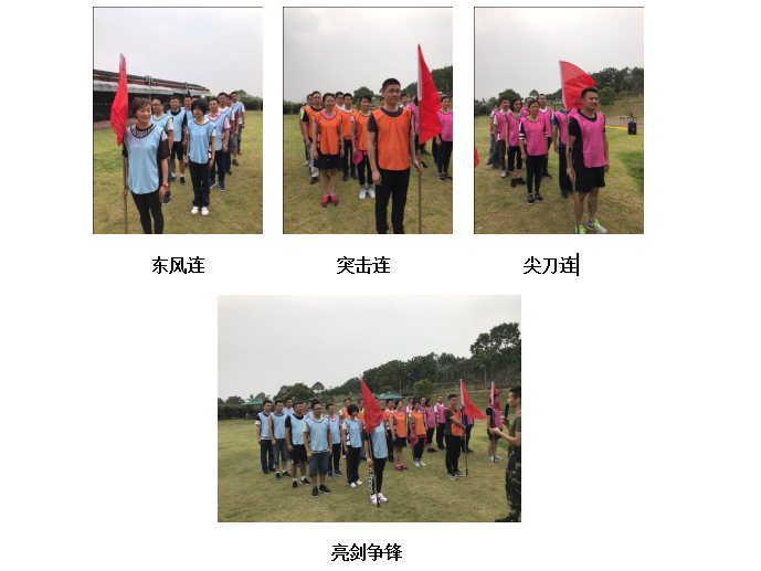 “開營組建團(tuán)隊(duì)”將全部人員分成3組(東風(fēng)連VS突擊連VS尖刀連),各組明確討論了團(tuán)隊(duì)分工、隊(duì)名、隊(duì)呼、身著統(tǒng)一服裝,斗志昂揚(yáng)地展現(xiàn)了我們團(tuán)隊(duì)的風(fēng)采。